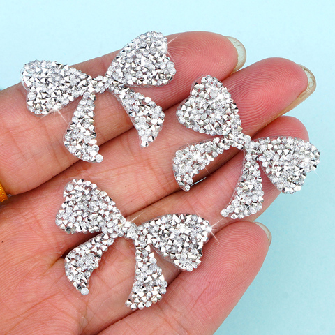 Grazioso ferro Applique di colore nero argento su piccola toppa con fiocco di strass per scarpe