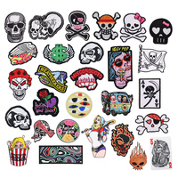 Toplu stok popüler yaratıcı Punk tarzı beyaz geri nakit gül kafatası palyaço kelebek demir nakış kişiselleştirilmiş yamalar üzerinde